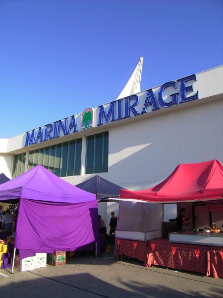毎週日曜日に競馬場で開かれる朝市が競走馬のインフルエンザの影響で先週中止になっていたので今週はマリナミラージュの 朝市へ。第一第三土曜日の朝7時から12時まで開催。朝7時過ぎに現地到着。混むと聞いていたけど、そんなに混んでませんでした。海辺の朝市だけど魚を 売っているのは1軒だけでした。ホテル住まいの人をターゲットにしてるのか値段は高め。でも、競馬場の朝市でお気に入りのパン屋さんがここに店を出してい るのを発見。いつも買っているパンをゲットできました。でも後で食べたら違う味でした。何で? ここは家に近くていいんだけど、朝市としては先週行った Nerangの朝市の方が店も多くて値段も安目でいいかなぁ。