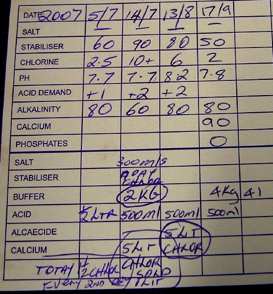 先月にプール屋で詰め替えた Chlorine(次亜塩素酸ナトリウム)のボトルが2日毎に300ml投入のペースで、雨の日や日が照っていない日とかは紫外線が少ないだろうからって ことでサボってたけど、ついに空になりました。検査用にプールの水をボトルに入れてまたプール屋へ。結構今月に入って雨が沢山降ってプールの水位が上がっ たのでどうなるかと思ったけど、今回のレシピはAcid(塩酸)500mlを投入とバッファー(重曹)を4kg投入とのご神託。バックウォッシュとかした から多少薄まってしまったのでしょう。Chlorineは独自のテキトーな投入レシピで良いみたい。要するに紫外線で水中塩素が減少するのを補うように天 気を見ながら投入するので正解だということだ。Chlorineが3.5ドルでバッファーが12.5ドルの計16ドルなり。家に帰ったら、バッファーは後 で入れることにしてとりあえずAcidのみ投入。