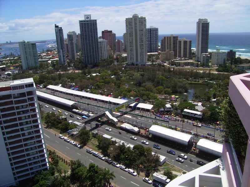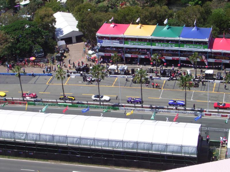 Indy 300 Final 今日はインディのホームストレッチのまん前にある妹の知り合いの家でインディ観戦。 公道を塞いで行なうレースなのでその家に近づくために通行許可証が必要。めったにない機会ということで各自料理や飲み物を持ち寄って集まったのが 20人弱。窓の外とテレビを見比べながらのんびりとレース見物。レースの合間に軍のジェットやヘリがデモンストレーションに来てました。ジェットが全開で 目の前を飛んで行くのは初めての経験でした。速度が速いので目の前を通り過ぎてから轟音が襲ってきます。話に夢中になってチェッカーフラグを見るのを忘れ たりとかしましたが、楽しい一日でした。 (wmv 約0.8MB)