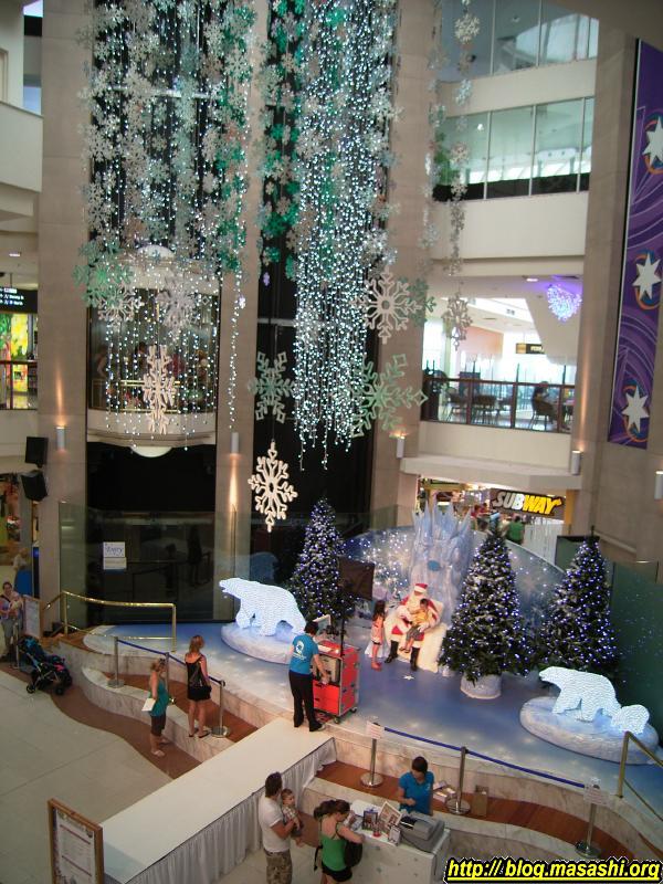 クリスマスに向けて 12月に入ると急にあちこちがクリスマス色に染まってきます。 オーストラリアフェアの中でサンタクロースと写真を撮影できるというコーナーが出来てました。 ひげむくじゃらの知らないオジサンに抱っこされて泣き叫んでいる子供もいました。まるでナマハゲですね。