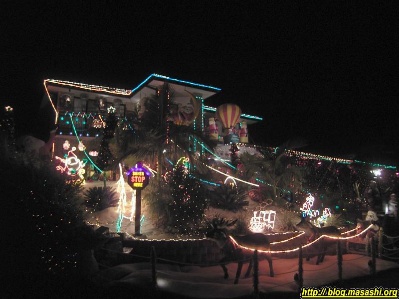 その近所の何軒かもそれなりにライトアップしていますが、かすんでしまっています。シンプルでキレイでしたけどね。