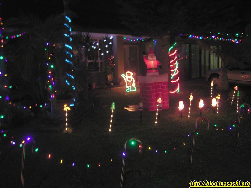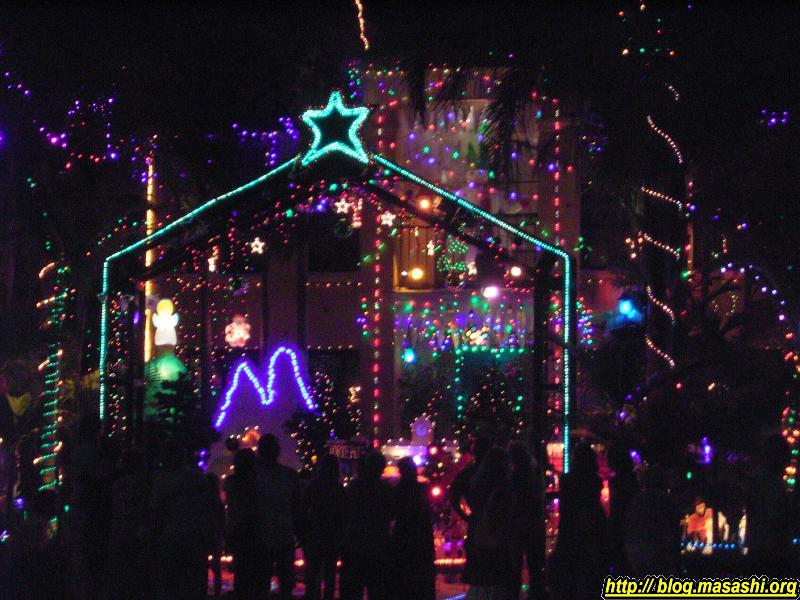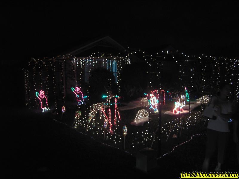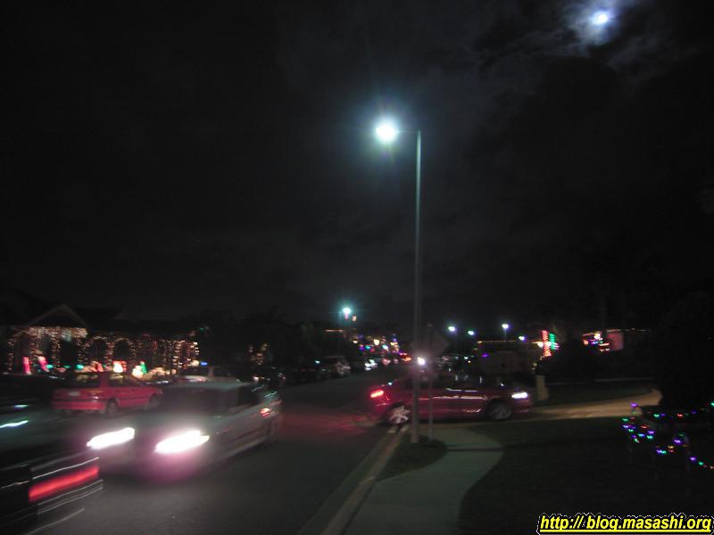帰宅する途中で近所のCotlew St.の”First Year Entry”部門3位の家に立ち寄りました。丁度見てる時に団体のバス客が到着。夜10時過ぎに結構な人が見物してました。