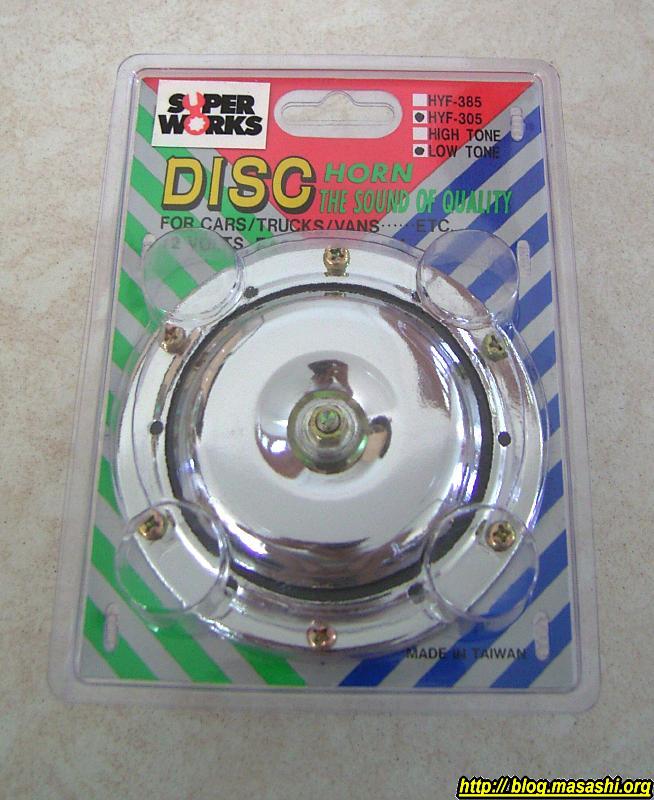 このあとどうすべえかと隣人の”J”さんに相談してみたら彼のガレージにhornごと連れ込まれ色々とhornには調整ネジがあってそれを回せば鳴 るようなるかも、と色々いじり回して調べてくれました。が、やっぱりhornは完全にお亡くなりになってました。これはもう交換するしかないということで 近所のSupercheapという車用品店に出かけてhornを買ってきました。