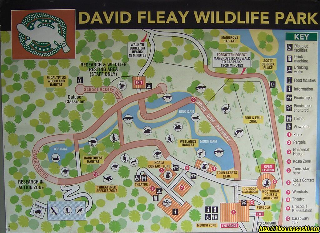 David Fleay Wildlife Park David Fleay Wildlife Parkに行ってきました。 公営の公園なのでTAFEの学生証で割引が効きました。当然、娘も学割です。 ここの目玉はカモノハシが観察できることです。残念ながら泳ぐ姿は暗闇の中なのでデジカメでは撮影できませんでした。 ←スローシャッターのいたずらです。(笑) ←ディンゴ