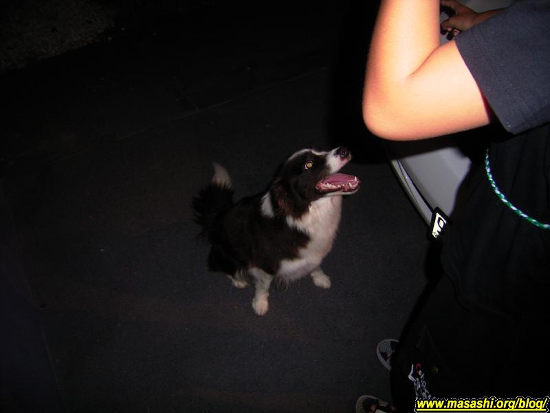 最近、夕食は涼しくて気持ちがいいので外のテラスへ出て食べる事が多いのですが、今日その外で夕食中にテラスと表の間の鉄扉の下の隙間に何者かがゴソゴソしてます。見に行ってみると犬です。多分近所の犬がブラブラと迷って人のいると思って我が家へ来たみたいです。結構人なつっこくて「おすわり(sit)」もちゃんとできます。放っておいてもいつまでも我が家の前に居座っているみたいなので娘と一緒に犬を連れて(歩くと勝手について来ます)近所を一回りしてみました。結局どこの家の犬か分からずじまいでしたが、犬は勝手にその辺で何かに興味があったのか付いてこなくなったのでそのまま家に戻りました。あれだけ愛嬌があっておとなしくて人なつっこければ犬も飼ってもいいかなと思いましたが、でもあの犬は絶対に番犬には向いてないよなぁ。