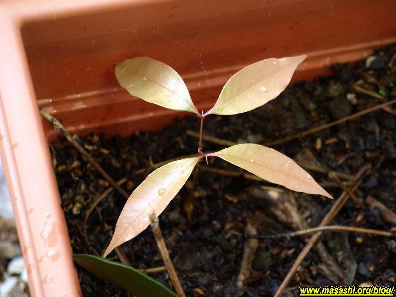 ライチ ライチを食べた後の種を植木鉢に適当に埋めていたら芽が出てきました。かなりか細い茎がいきなり二股に分かれてそこから双葉が出るという風変わりな感じです。葉っぱも緑ではなく色づき始めた紅葉みたいな色です。育てば結構小さな樹に沢山実が生るそうなのでちょっと楽しみ。
