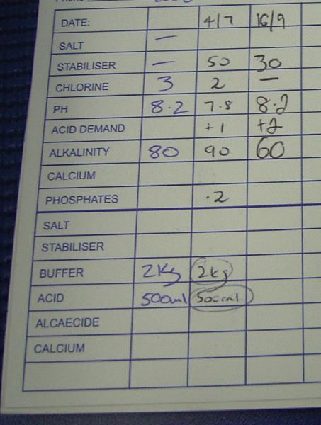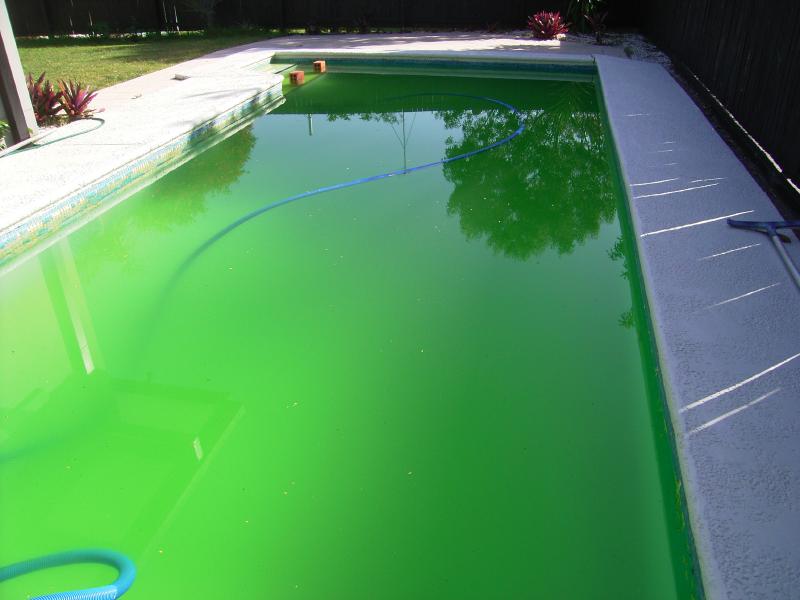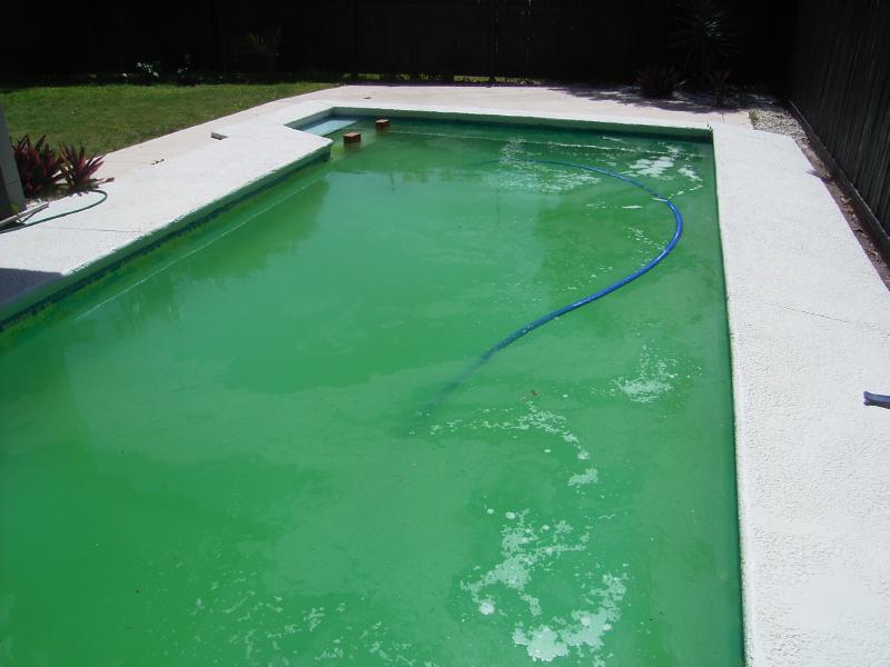 7月以来、かなりメンテをさぼってChlorineが切れてそのままにしてたらプールが緑になってしまいました。プール屋で水質検査したら塩素はゼロ。こうなったら仕方ないので大量に塩素を投入して藻を殺すと同時に藻で出来た斑点を取る薬も投入して水がきれいになったらまた水を検査しましょうということになりました。