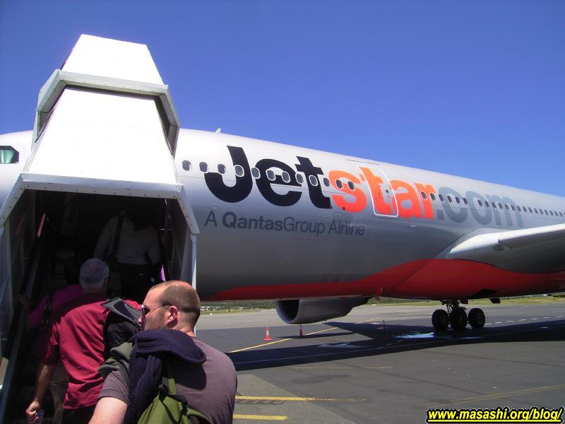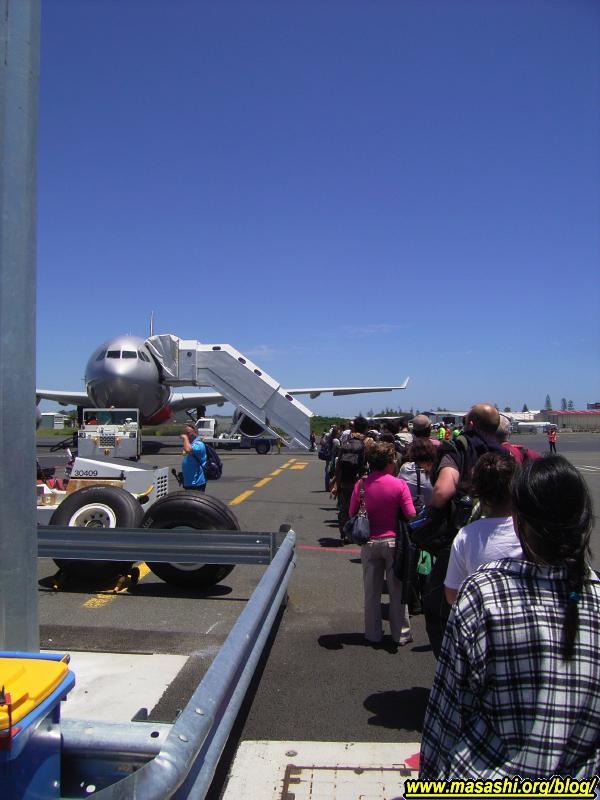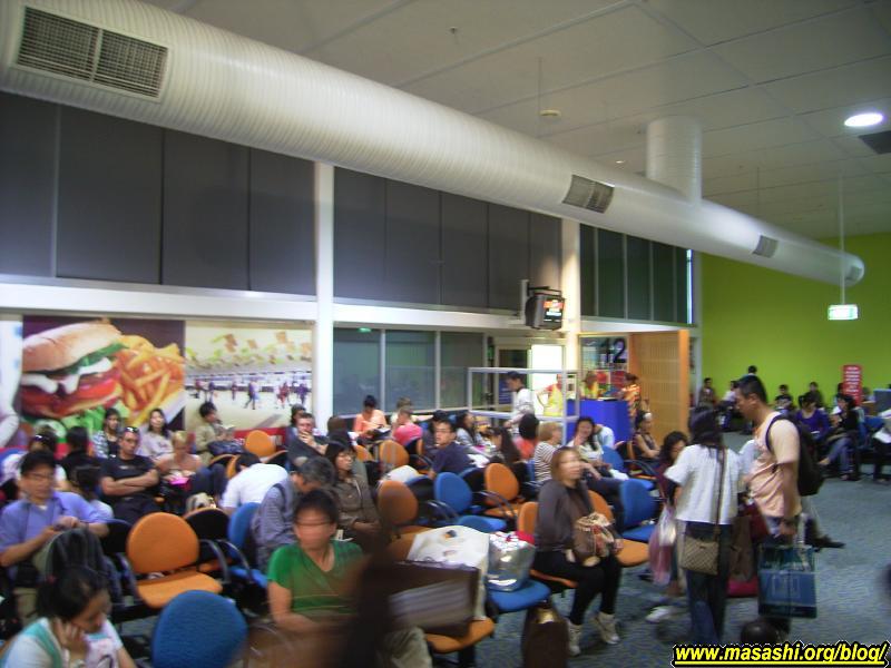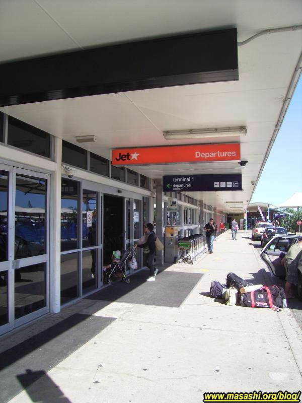 妹に頼んで送ってもらい空港に到着。ゴールドコーストから近いのでかなり便利です。以前この空港に降り立ったのはシドニーから国内線として到着した時でした。今日の便は成田直行の初就航便です。チェックインカウンターの前にはテレビカメラを抱えた人がウロウロしていました。一度私にインタビューしようとしてマイクを私のほうに向けて「Do you speak English?」と訊かれて思わず「No!」と即答した私は小心者です。日本行きの荷物は重量はそう重くないのですんなりチェックインできて出発ロビーへ。国際線の出発ロビーとしてはかなり狭いかなぁ。結構人でごったがえしていました。ゴールドコーストから日本へ直行なので便利なのですが設備の面ではもう少し良くなって欲しいです。