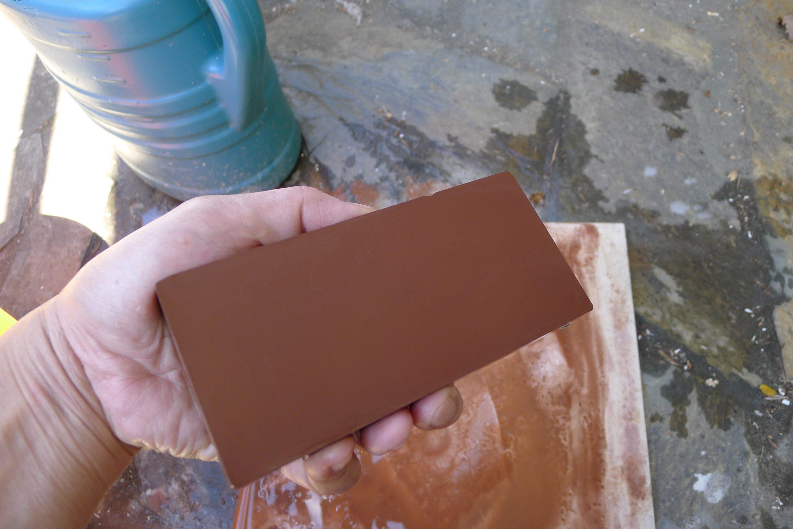 ネットで面直しの方法を調べると色々な方法流儀があるみたいですが、私は私の自己流でやってます。その方法は大きめのタイルにこすり付けるというやり方です。要するに硬い平らな面に砥石を押し付けながらこすれば自分自身の砥の粉で面直しできるという訳です。こちらでは基本は乾燥しているので砥石は放っておけば勝手に乾燥してくれます。なので面直しの時はどっぷりと水を吸わせてからタイルにこすり付けます。