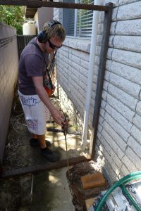 そして多分コンクリートマイクの一種とフィルタ付アンプとヘッドフォンという装備で水漏れの音を家のあちこちで聞きながら水漏れ箇所を探していきます。「バスルームはどこ?」「他に蛇口は?」「ランドリーはどこ?」等々訊かれる度に家の中外案内して回り、それぞれの場所で音を聞いてます。でも30分ほどあちこち音を聞いてもどこに水漏れがあるのか見つかりません。とうとう「あとは雨水タンクの下で水漏れしてたら分からないね」などと言い出す始末。実はplumberが来る前に私は家の水道の蛇口全部に耳を押し当てて何か聞こえるか試していたんです。そしてランドリーの蛇口のところでかすかに「シャー」という音が聞こえるのを見つけていたので彼にそのことを言ってみたのです。彼はマイクをランドリーの蛇口に当てて聞いてみたり、耳を押し当てて聞いてみたりしたのですが「何も聞こえない」と。お隣さんもその音は聞こえないそうです。もっともお隣さんは私よりもかなりお年寄りなのでこれも無理はないと思いましたが、plumberの彼は私よりも一回り以上若いんです。聞こえないはずがないと思うのですが、「全然聞こえない」そうです。うちの家族は全員その「シャー」っていう音は聞こえているのに。。。